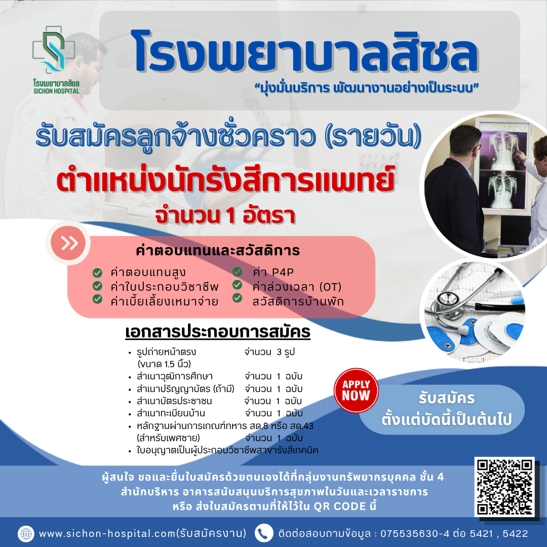เปิดรับสมัคร นักเรียน นักศึกษาฝึกประสบการณ์วิชาชีพ ณ โรงพยาบาลสิชล